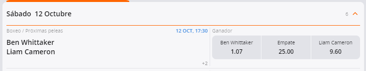 Por ejemplo, si tomamos como referencia una de las próximas peleas de boxeo que se llevó a cabo el 12 de octubre entre Ben Whittaker y Liam Cameron, observamos que todas las miradas están puestas en el primero.
