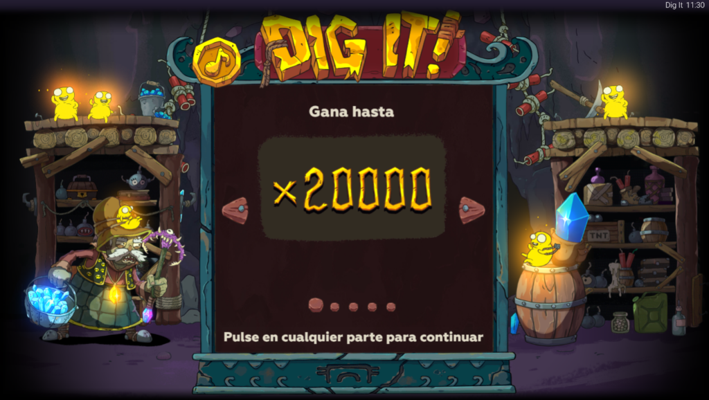 La vida de los mineros no es fácil, pero con Dig It, al menos puede ser divertida. En esta tragamonedas, te pones el casco, enciendes la linterna y lánzate a excavar en busca de premios brillantes bajo la tierra.