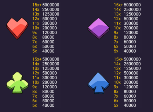 Como viste, en este juego los premios no se basan en líneas tradicionales, sino en grupos de 5 o más símbolos iguales que se agrupan horizontal o verticalmente.